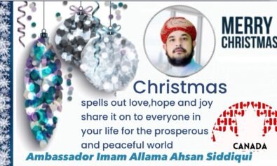 His Highness Ambassador Imam Allama Ahsan Siddiqui extends warm Christmas greetings to the Christian community in Canada and around the world.