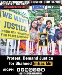 PAKISTAN: Interfaith Commission for Peace & Harmony (ICPH) and International Religious Freedom Roundtable for Pakistan (IRF Pakistan) expresses deep grief and sorrow over the brutal attack and tragic killing of renowned brave International journalist and anchor. Imtiaz Miris advocates for religious freedom and peace and harmony. On September 21, Imtiaz Mir was sustained five gunshot wounds from unidentified assailants, shortly after the incident, succumbing to his injuries on September 29. at the terrorist extremist group “ Lashkar-e- Tharullah ” has claimed responsibility labeling Mr. Mir a “Zionist agent.” his killing due to his stand with minorities talk on Jewish , Christians, Hindu, Sikh and others. The group cited his alleged Zionist leanings as the reason for targeting him. The sad reality is that nowadays no one feels safe, not even in their own homeland.