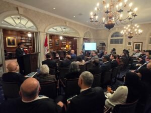 High Commissioner of Pakistan to Canada Muhammad Saleem, delivered keynote address at the historic Albany Club Toronto, engaging a distinguished audience of Canadian legislators, business executives and policy influencers. The event served as very pertinent platform to share the low lying fruits and immense opportunities for bilateral economic cooperation with Canada’s political and business communities.