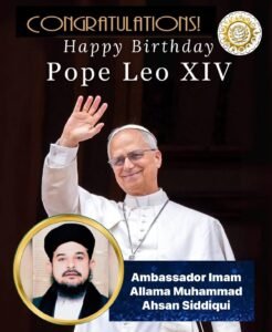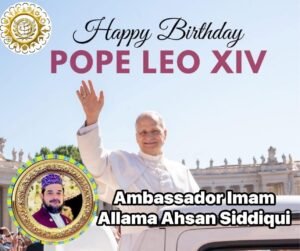 PAKISTAN : Today the world celebrates the 70th birthday of Pope Leo XIV “I would like this greeting of peace to resound in your hearts, in your families, among all people, wherever they may be, in every nation and throughout the world: Peace be with you all!’ (Pope Leo XIV) – The Co-Chair Pakistan, International Religious Freedom Roundtable for Pakistan (IRF Pakistan) and the Interfaith Commission for Peace & Harmony (ICPH), led by His Highness Ambassador at Large for Global Peace and Human Rights Imam Muhammad Allama Ahsan Siddiqui.