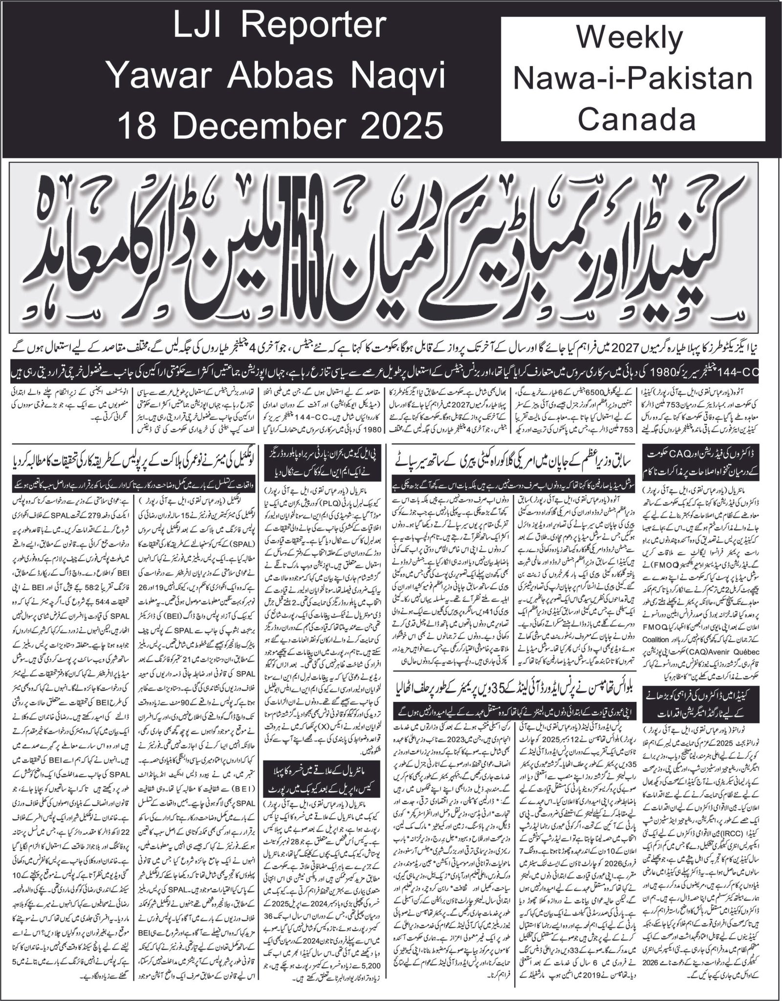 ایل جے آئی رپورٹر سید یاور عباس نقوی 18 دسمبر 2025